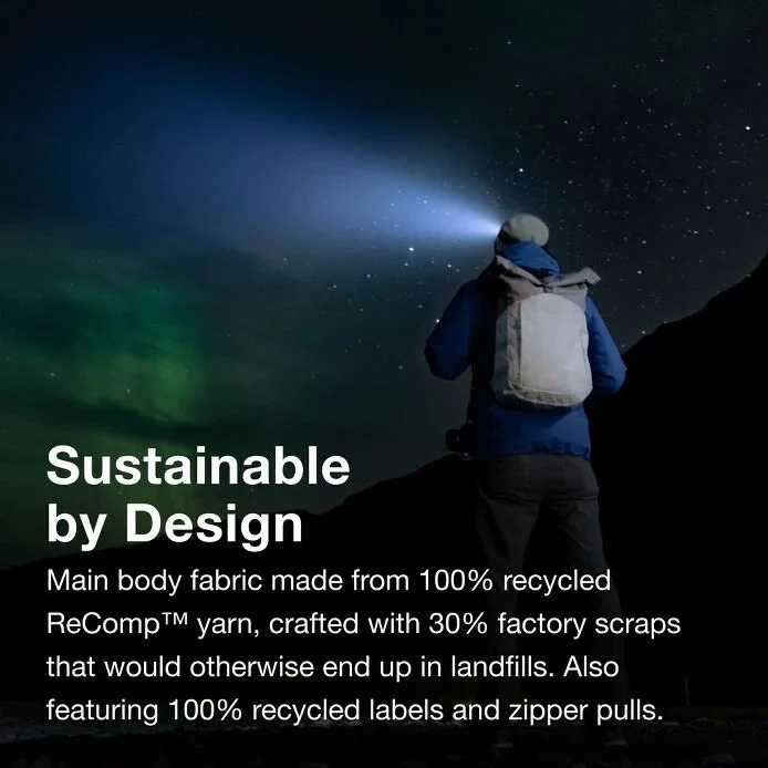 Made from third-party certified, 100% recycled ReComp™ yarn—crafted with 30% of our own factory scraps that would otherwise end up in landfills—the Osprey Arcane Earth Roll Top advances material innovation* without compromising function or style. A roomy main compartment and padded laptop sleeve secure tech and everyday items, while pockets keep small items handy on the go. A bluesign® PRODUCT. *See Key Attributes and Carry Information for details.